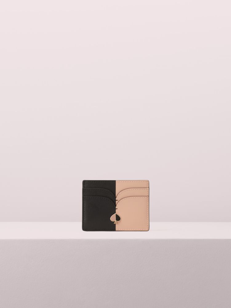 every color pairing on this little cardholder is bold and so sophisticated. the smooth italian leather feels lovely in your hand, and gets softer over time. did you see the inverse enamal spade on the front? one last detail we love: the plunge on every card slot is inspired by the curves of our signature mark.