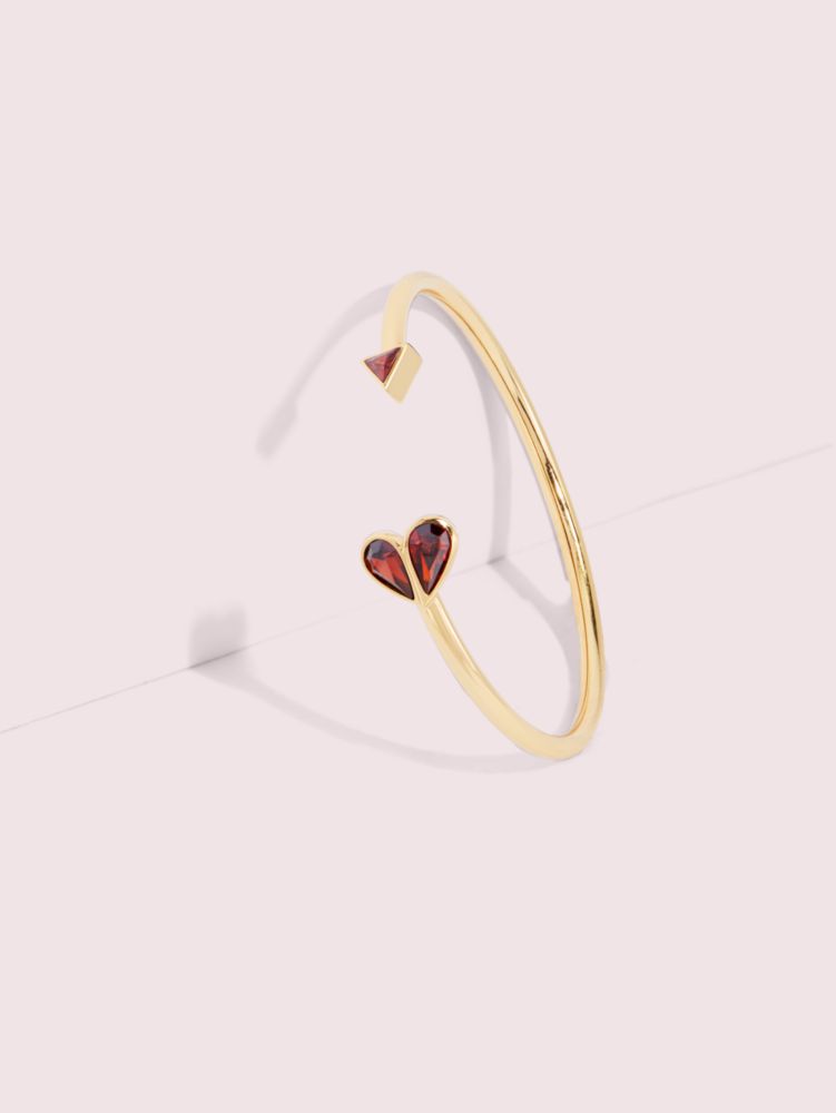 handcrafted of gold-tone metal, our rock solid flex cuff is embellished at the ends with two of our signatures: a heart and the tip of our spade. we punctuated it with sparkling faceted crystals for the finishing touch.