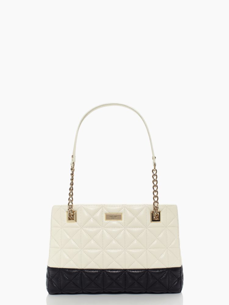 reminding us of new york city's glamorously artsy party scene in the 60s, this quilted, pebbled metallic leather shoulder bag features a center zip divider and magnetic snap closures for convenient toting.
