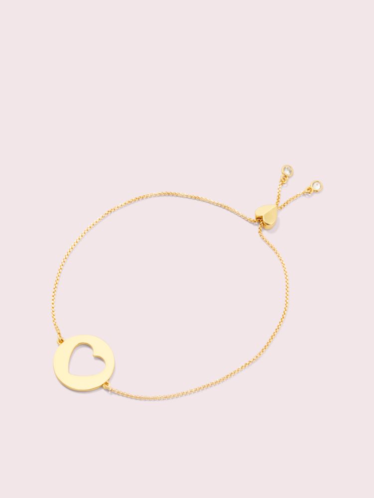 our symbols collection is a little way we're celebrating classic shapes we love; like the pretty heart we detailed this bracelet with. it's the perfect layering piece to add to your bracelet collection. the best part? it secures with a metal slider, so it slips on easily and adjusts for the perfect fit.