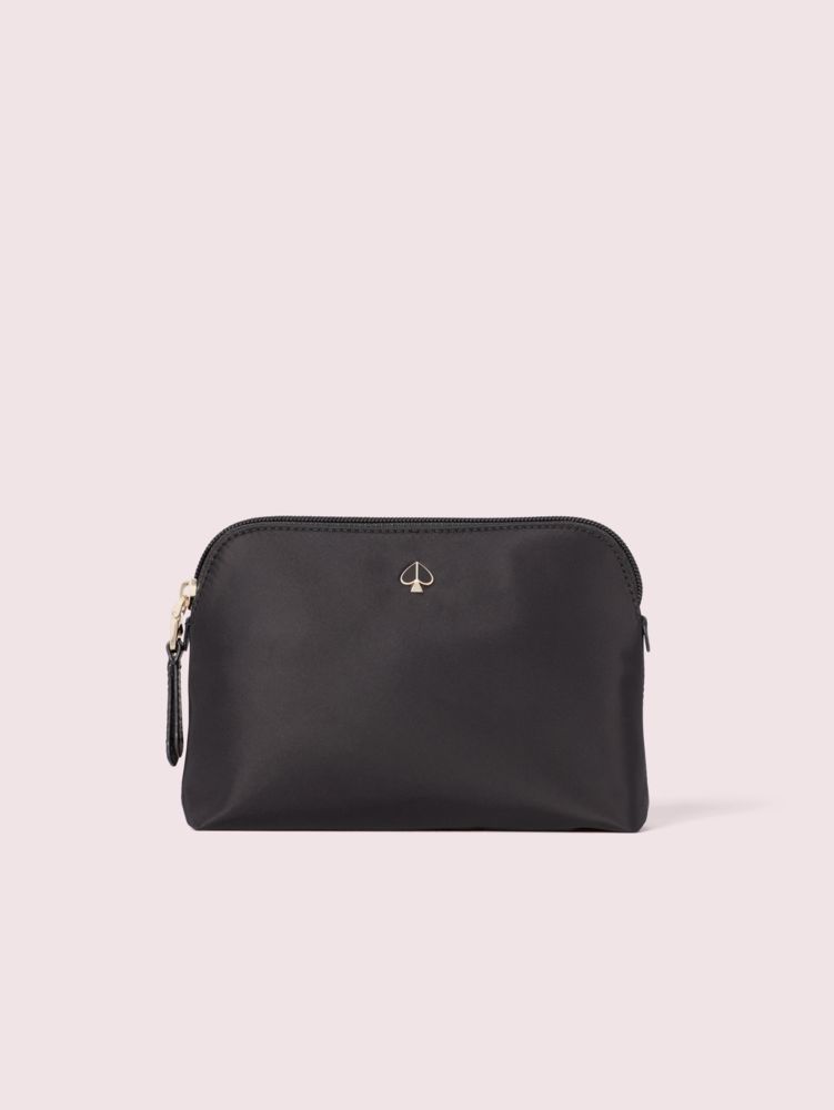 we made our taylor medium cosmetic case from our classic woven nylon that's very durable to scratches and stains (because sometimes lip gloss leaks happen). and timeless details like matching leather trim and a shiny pinmount logo come together to make it as sleek as it is functional.