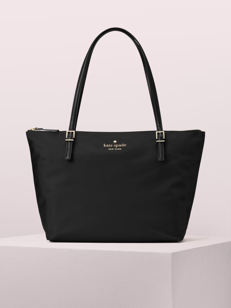 we've always loved designing bags in nylon. in fact, the very first bag we ever made was nylon. the watson lane maya tote is done in a very durable woven version with leather straps to give it a chic, sporty look. it's spacious and lightweight so you can load in your everyday essentials. and did you see the pin-mounted logo on the front? it's one more thing that makes this carry-all a classic.